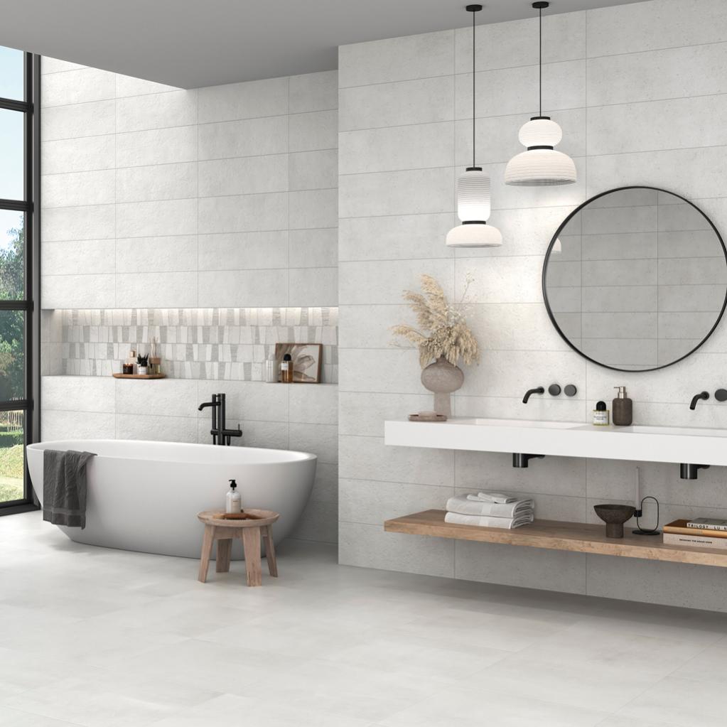 Carrelage Mural Effet Beton Blanc 3d Mat L 30 X L 90 Cm Theory Leroy Merlin