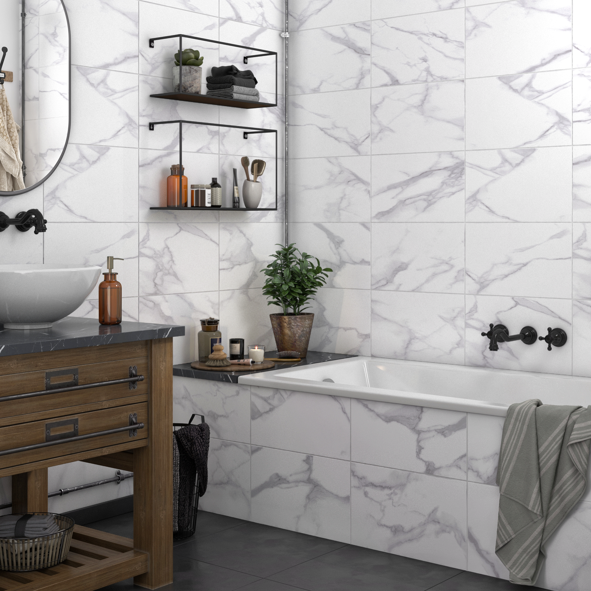 Carrelage Mural Effet Marbre Blanc Brillant L 25 X L 40 Cm Galac Leroy Merlin