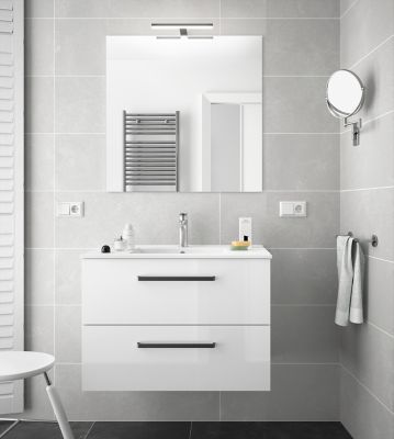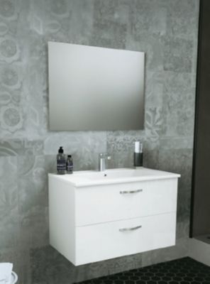 Meuble Sous Vasque A Suspendre Comfort 80 Cm Blanc Plan Vasque En Ceramique Miroir Spot Castorama