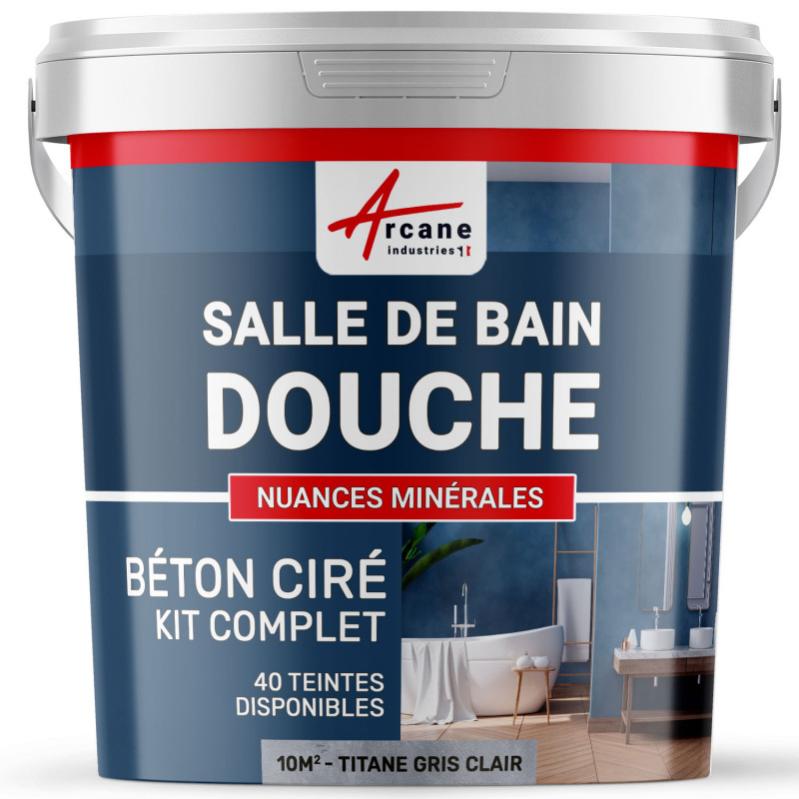 Ce Kit Béton ciré pour Sol ou Murs carrelés de Salle de bains sur carrelage contient tous les produits nécessaires pour la réalisation dun béton ciré sur carrelage de 10 m2Ce kit contient le primaire daccrochage universel le mortier de lissage pour remplir les joints du carrelage le béton prêt à lemploi pour la 1ere et 2eme couche et le vernis de protectionIl se pose dans. Pour une pose sur des murs presentant des asperites defauts de niveau ou murs degrades la pose se fait apres avoir fixe un chassis pvc ou d.