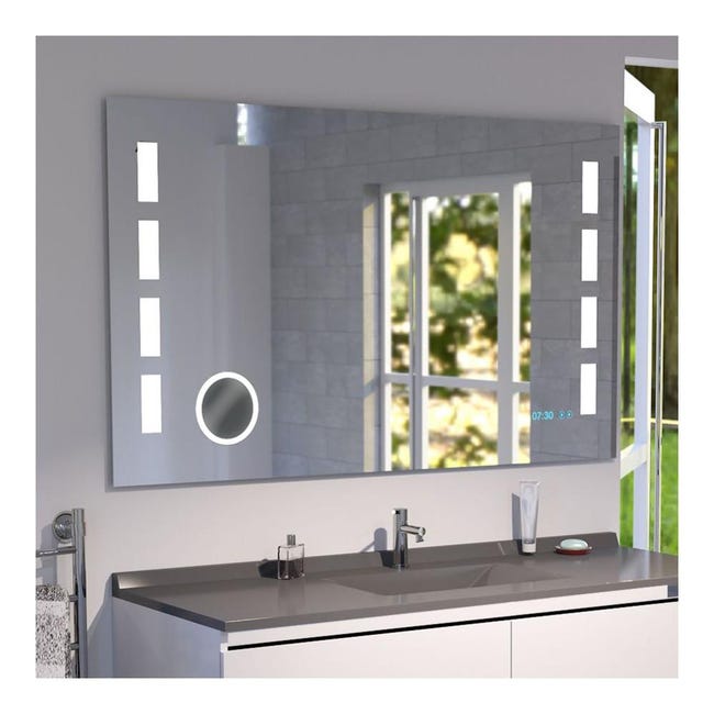 Miroir Anti Buee Excellence 120x80 Cm Eclairage Integre A Led Interrupteur Sensitif Loupe Et Heure Leroy Merlin