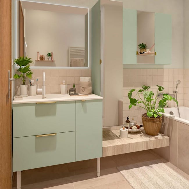 Meuble Simple Vasque L 90 X H 64 X P 48 Cm Vert Sage 5 Neo Line Leroy Merlin