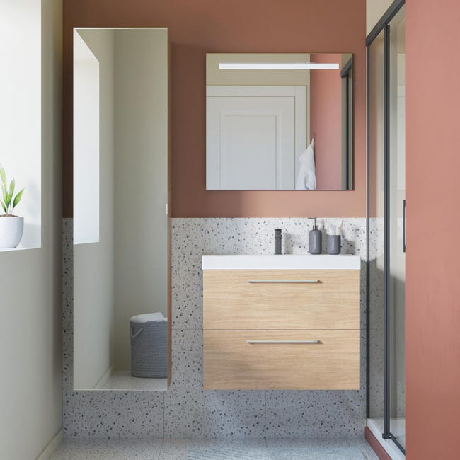 Avec des meubles de salle de bains et des vasques pour tous les goûts. Salle De Bain Remix Leroy Merlin. Meuble de salle de bains Remix l60 x H58 x P46 cm chêne Remix.
